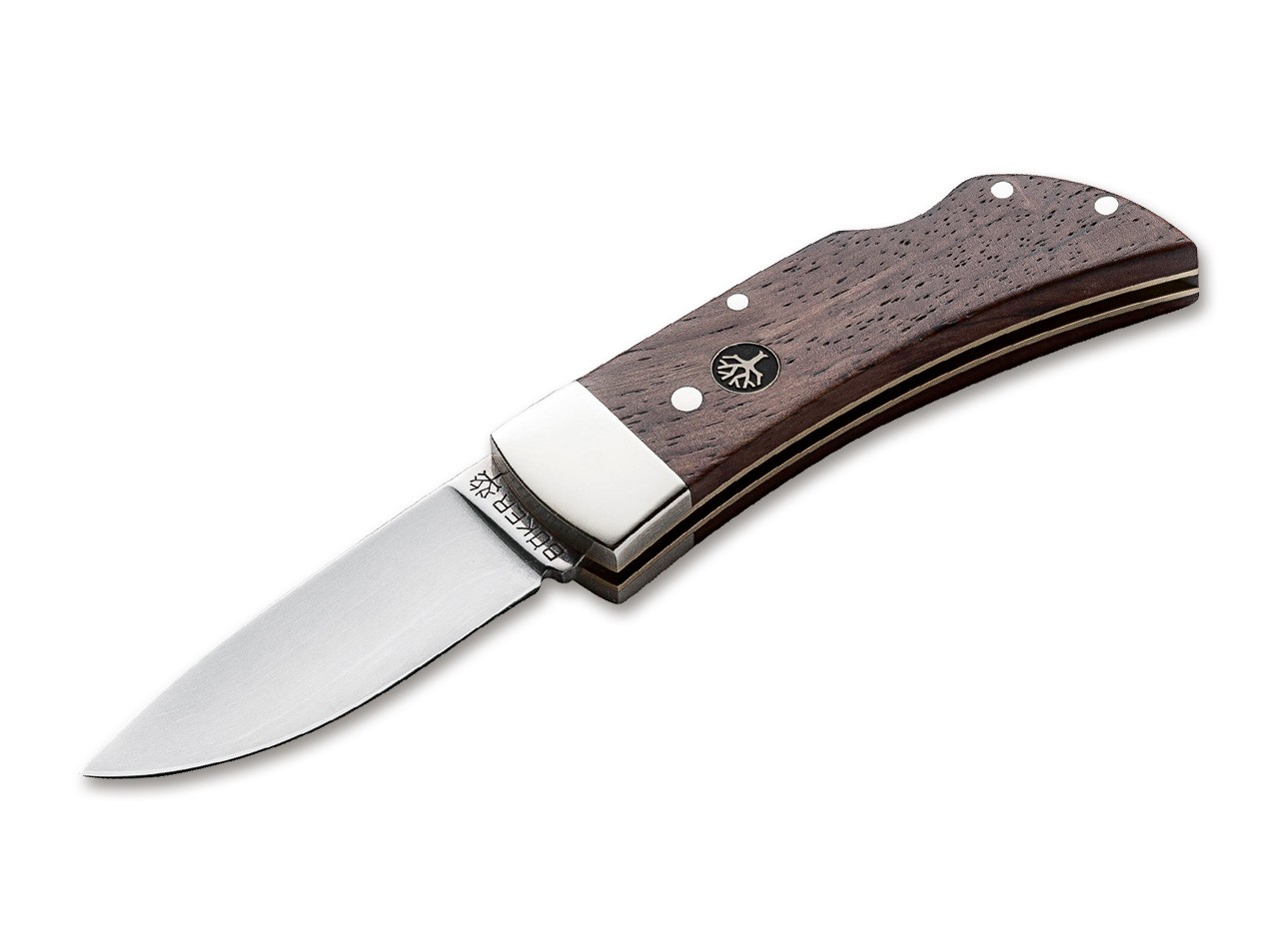 Unser Taschenzwerg, das Böker Pocket, ist seit jeher ein überaus beliebtes Modell für die sprichwörtliche Westentasche oder die Münztasche der Jeans. Die Griffschalen des extrem leichtgewichtigen Taschenmessers bestehen aus zertifiziert importiertem Palisanderholz. Die Klinge wird aus 4034 gefertigt, einem klassischen Solinger Klingenstahl, der Schnitthaltigkeit, Korrosionsresistenz und leichte Nachschärfbarkeit verbindet. Verriegelt wird die Klinge durch einen klassischen Backlock.