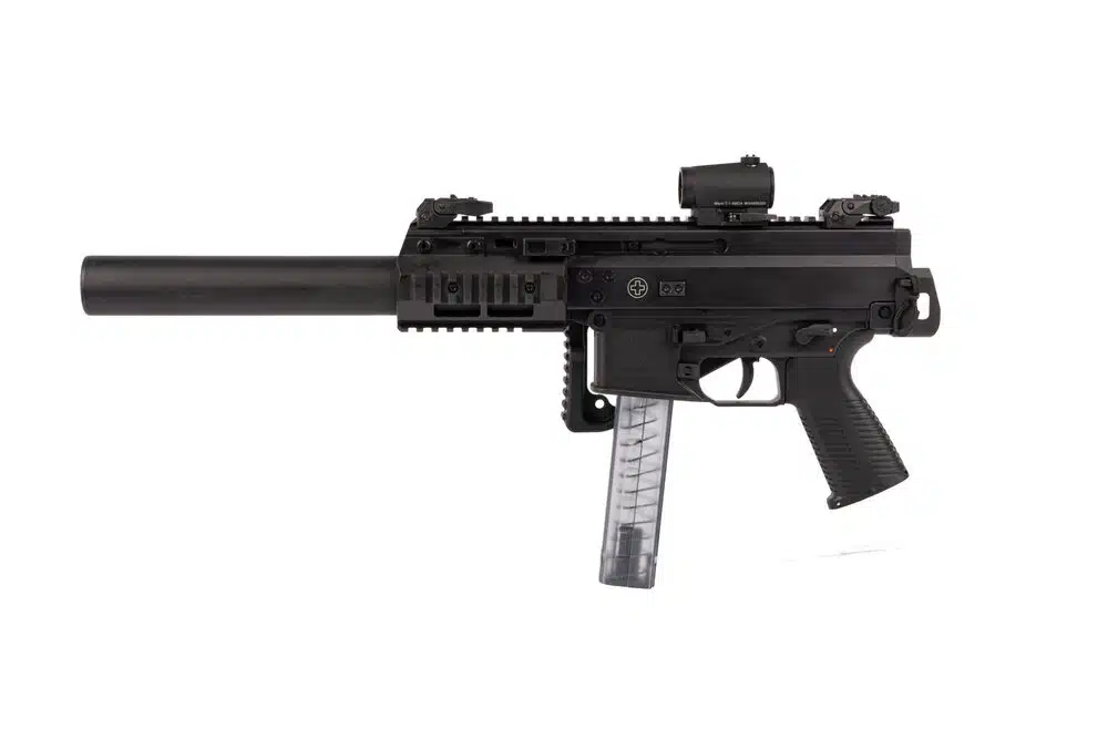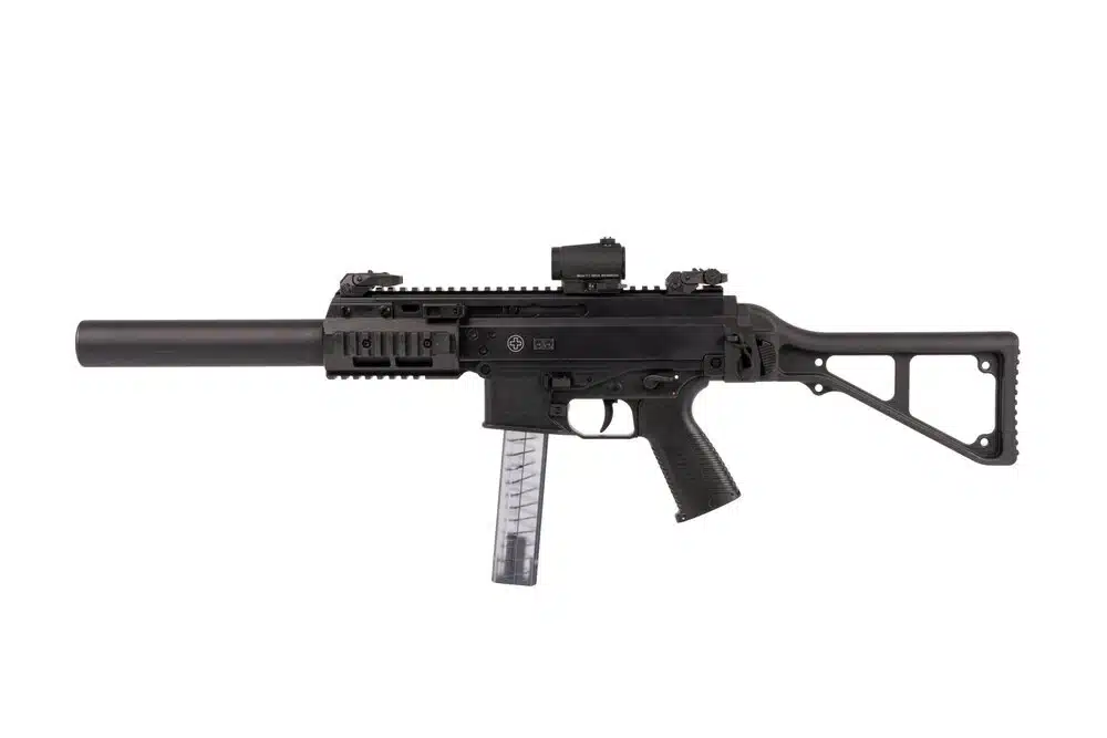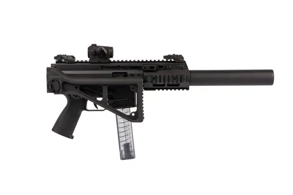 Dank des integrierten Schalldämpfers ist die Waffe sehr leise. Aufgrund spezieller Bohrungen direkt vor dem Patronenlager kann auch Überschallmunition verwendet werden, da diese durch die Bohrungen auf Unterschallgeschwindigkeit reduziert wird.