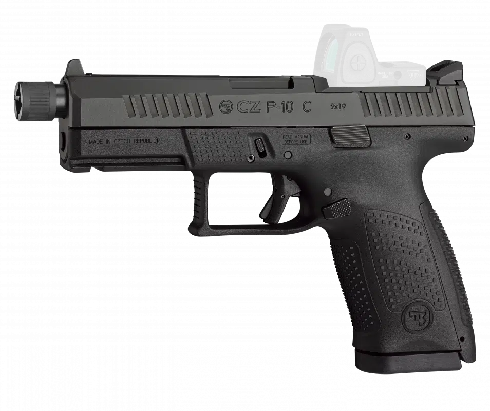 Die CZ P-10 C OR SR (OpticsReady und vorbereitet für Schalldämpfer) verfügt über einen modifizierten Schlitten für die Montage eines Reflexvisiers sowie einen verlängerten Lauf mit 1/2”×28 UNEF-3A Gewinde für einen Schalldämpfer.