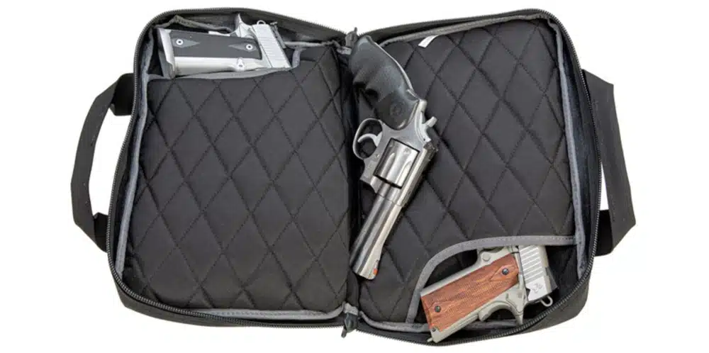 - 3 gepolsterte Innentaschen für Pistolen mit integrierter Magazinaufbewahrung