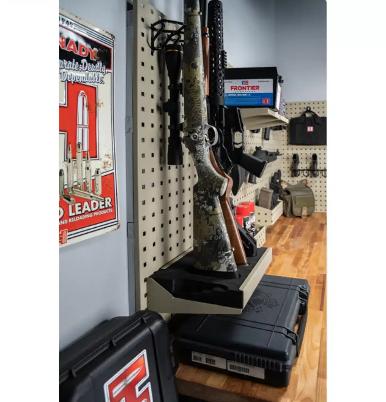 Verbessern Sie die Aufbewahrung und Organisation Ihrer Gewehre und Handfeuerwaffen mit dem vertikalen Waffenständer Square-Lok (3 Waffen) von Hornady. Jedes 12 x 12 Zoll große Stützregal verfügt über eine PVC-beschichtete Laufauflage/einen Waffenständer, der drei Gewehre sicher halten kann. Die tiefen Abstandshalter bieten reichlich Platz für Zielfernrohre mit größerem Durchmesser und hohen Türmen. Mit einem zum Patent angemeldeten Doppelfunktionsdesign nutzt dieser Waffenständer den Raum zwischen den Laufresten, um bis zu vier Handfeuerwaffen zu lagern. Das Stützregal rastet durch integrierte Haken und Spreizösen nahtlos in Square-Lok-Platten ein. Vielseitigkeit steht im Mittelpunkt seines Designs, da dieser Waffenständer vollständig mit Square-Lok-Platten, -Schränken, -Safes und -Tresoren kompatibel ist.