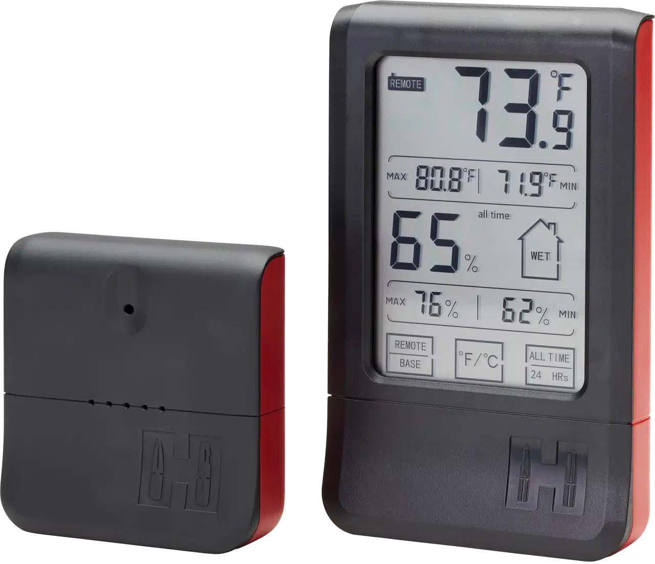 Überwachen Sie Luftfeuchtigkeit und Temperaturstufen – halten Sie Ihre Waffe sicher Feuchtigkeit und rostfrei, indem Sie dieses kabellose Hornady Hygrometer zu Ihren Waffensafes und Schränken hinzufügen. Enthält 2 Messeinheiten, eine Remote-Basis und eine digitale Anzeige, die sowohl Temperatur als auch Luftfeuchtigkeit überwachen kann, ohne den Safe zu betreten.