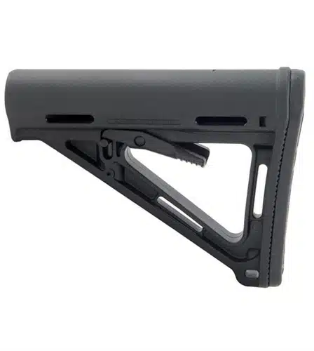 Der MOE-Carbine-Commercial-Spec-Schaftl (Magpul Original Equipment) ist ein Drop-In-Ersatzschaft für AR15/M4-Gewehre mit System-Verlängerungsrohren in Commercial-Spec-Größe. Das stromlinienförmige A-Frame-Profil wurde für leichte, schnelle Aktionen entwickelt und verhindert ein Verhaken und schützt den Entriegelungshebel, um eine versehentliche Verstellung zu verhindern.