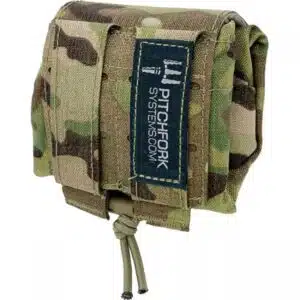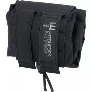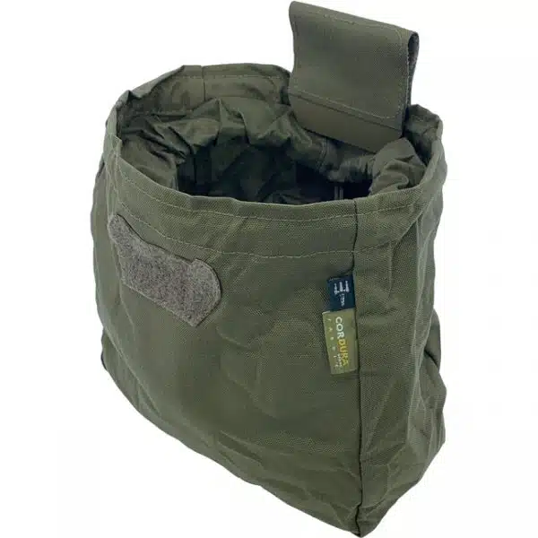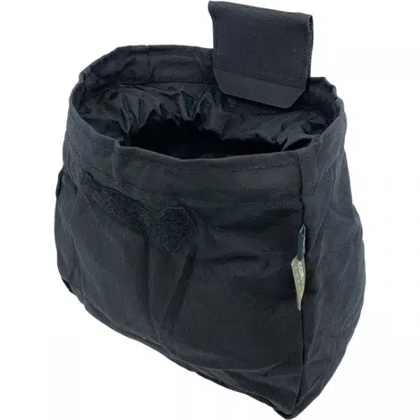 Die Dump Pouch Short ist ausgelegt für ca. 6x AR15, 4x SIG 55x oder andere vergleichbare Magazine und passt perfekt an Gürtel oder jede andere MOLLE System basierende Oberfläche. Wenn nicht in Gebrauch lässt sie sich platzsparend zusammenfalten und durch die griffige Gummi Lasche auch ausserhalb des Sichtfelds instinktiv greifen und ausklappen. Rund um die Öffnung findet sich eingenäht eine Verstärkung damit die Tasche offen bleibt. Diese ist im Umfang grössenverstellbar damit die enthaltenen Magazine auch in Bewegung an Ort und Stelle bleiben.