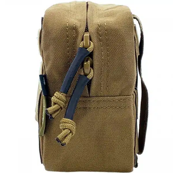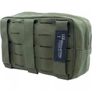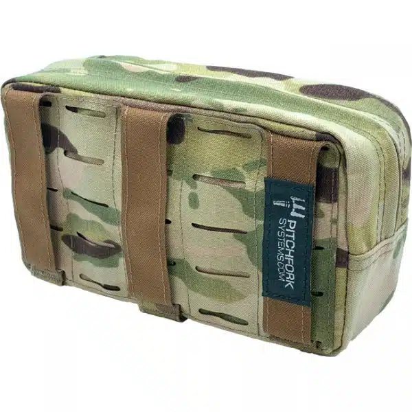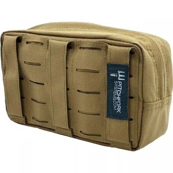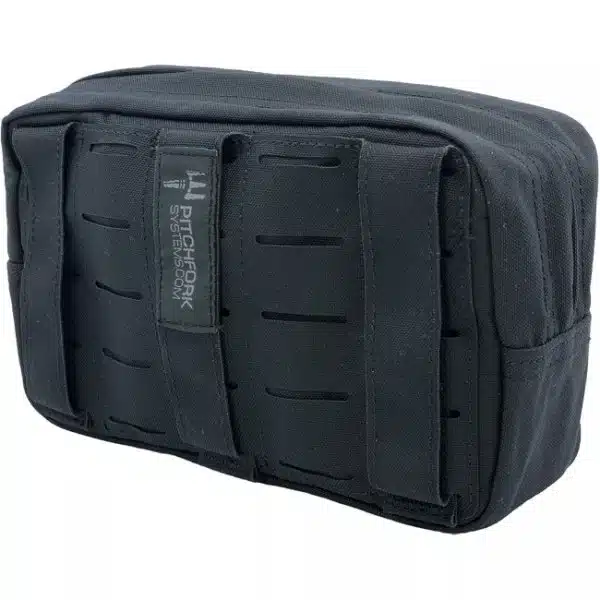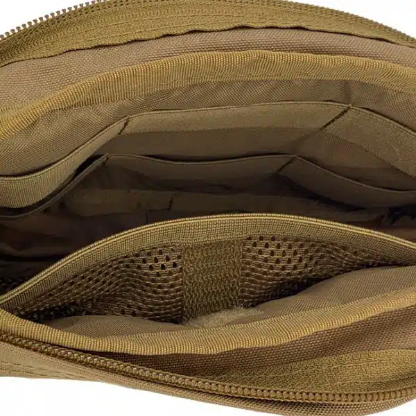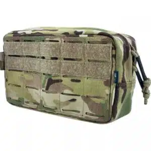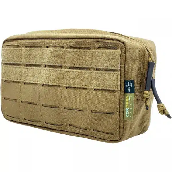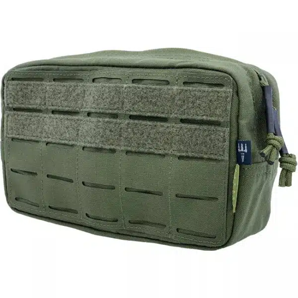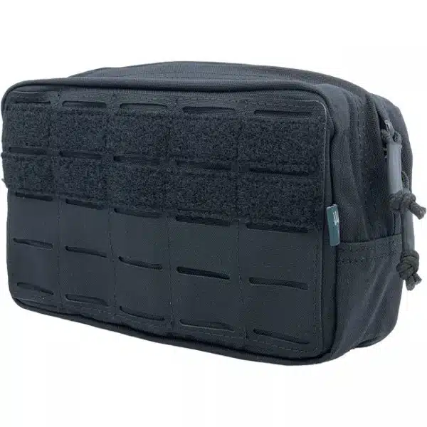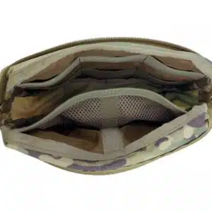 Die Horizontal Utility Pouch Medium verfügt aussen über eine MOLLE System Oberfläche sowie zwei Streifen Klett für Patches. Innen finden sich auf der einen Seite zwei übereinander verlaufende Reihen mit elastischen Schlaufen und auf der anderen eine Netztasche, die sich mittels Klett vertikal unterteilen lässt. Damit lässt sich eine ganze Menge Zubehör sicher verstauen.