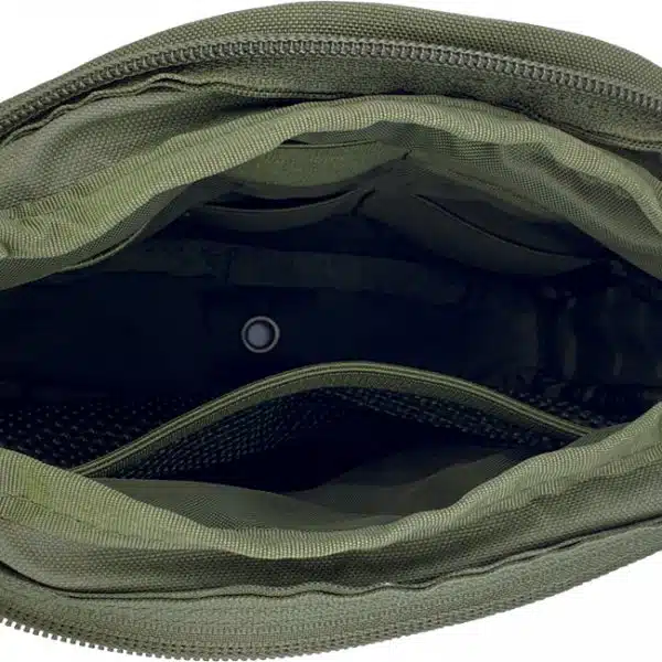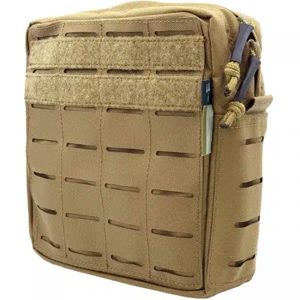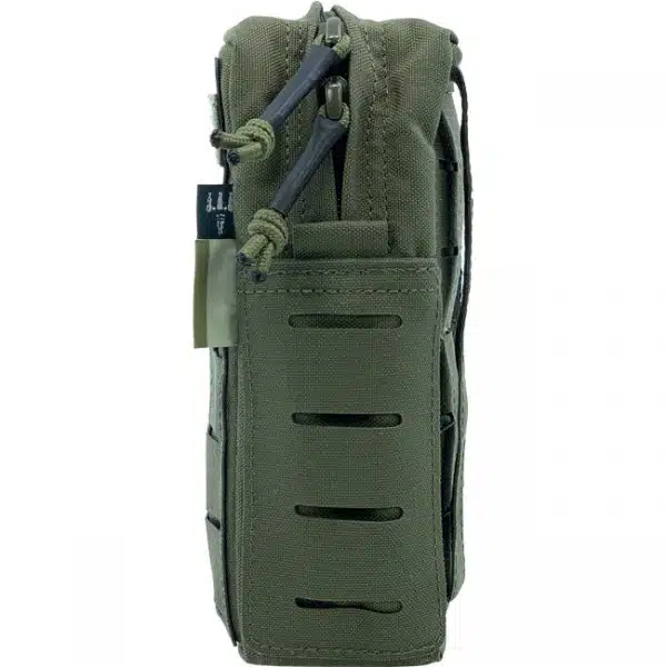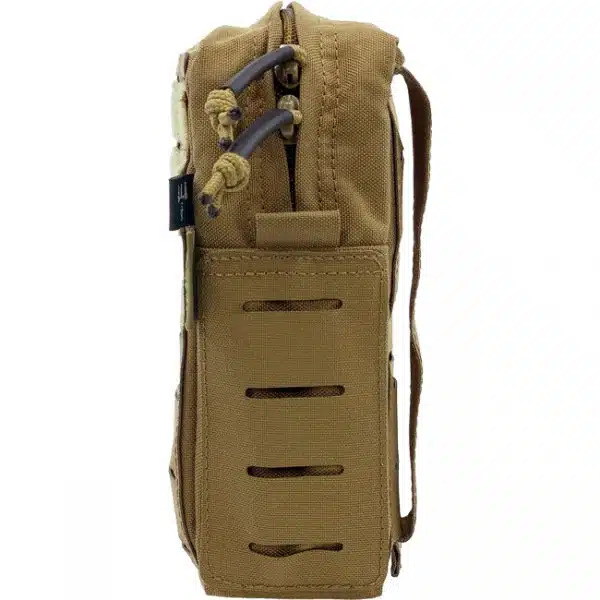 Die Vertical Utility Pouch Medium verfügt aussen über eine MOLLE System Oberfläche sowie zwei Streifen Klett für Patches. Innen finden sich auf der einen Seite zwei übereinander verlaufende Reihen mit elastischen Schlaufen und auf der anderen eine Netztasche. Damit lässt sich eine ganze Menge Zubehör sicher verstauen. Alternativ kann die Tasche auch für ein persönliches Erste Hilfe Set verwendet werden.
