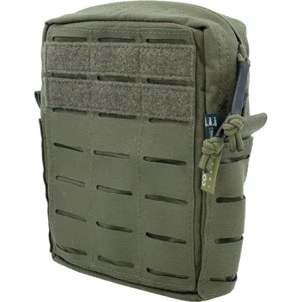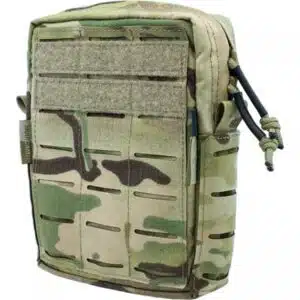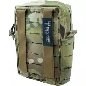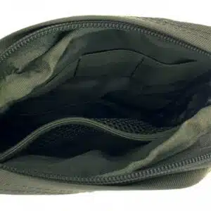Die Vertical Utility Pouch Small verfügt aussen über eine MOLLE System Oberfläche sowie zwei Streifen Klett für Patches. Innen finden sich auf der einen Seite zwei übereinander verlaufende Reihen mit elastischen Schlaufen und auf der anderen eine Netztasche. Damit lässt sich eine ganze Menge Zubehör sicher verstauen. Alternativ kann die Tasche auch für ein persönliches Erste Hilfe Set verwendet werden.