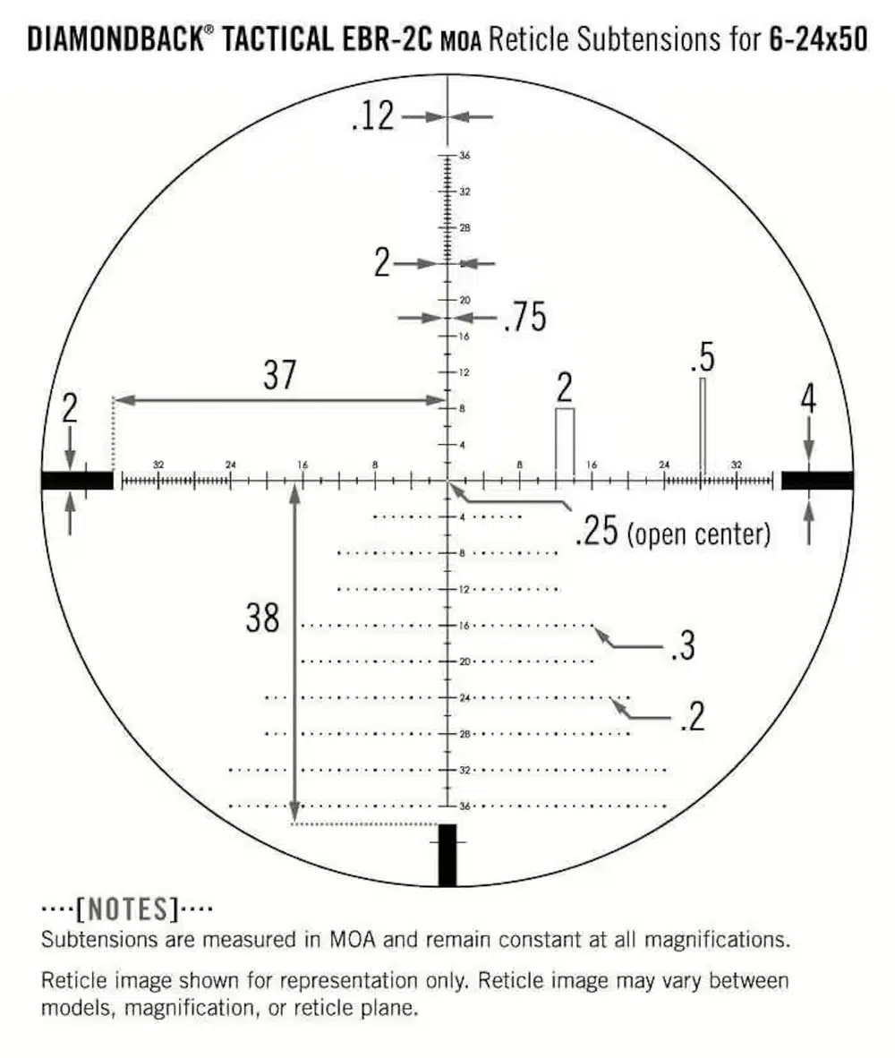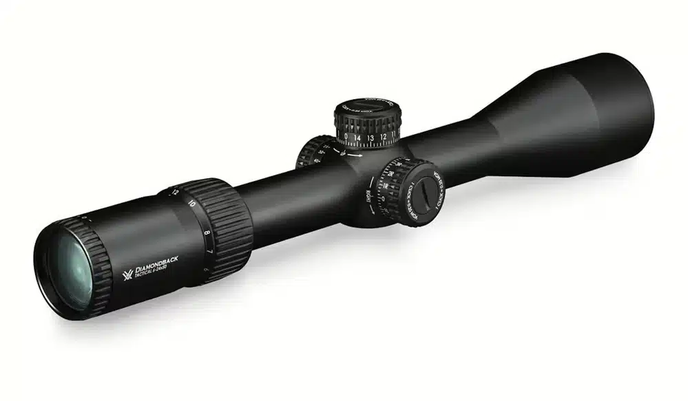 Das Vortex Diamondback Tactical – ein Zielfernrohr das sein Einsatzgebiet sowohl im taktischen Schießen, als auch im jagdlichen Bereich findet. Dank des Absehens in der ersten Bildebene (FFP) ermöglicht es dem Schützen die Verwendung des mit Informationen gefüllten EBR-2C-Absehen für Entfernungs-, Überhalte- oder Windkorrekturen bei jeder Vergrößerung. Und das zu einem Preis der für ein FFP-Glas unschlagbar ist.