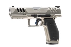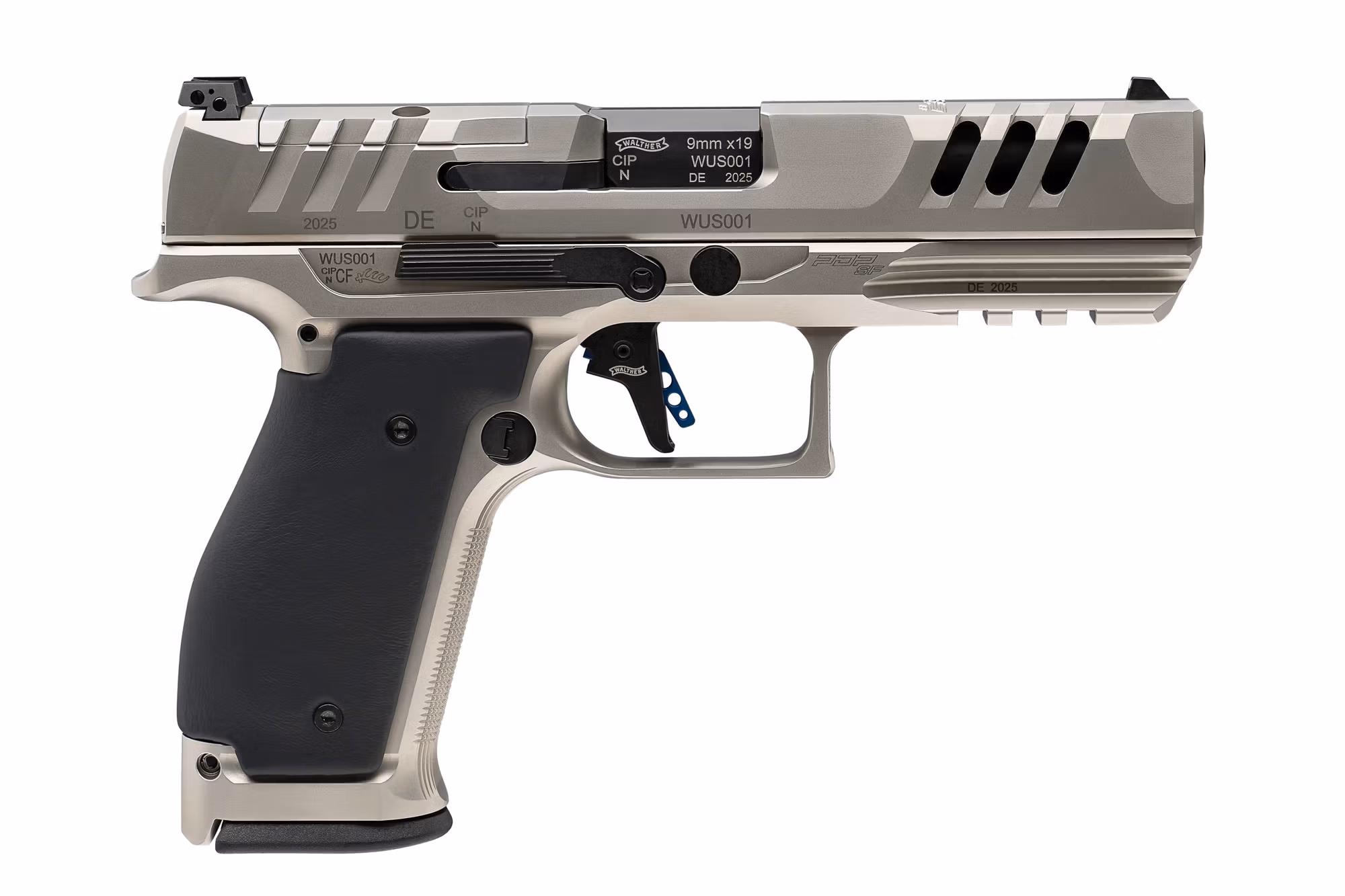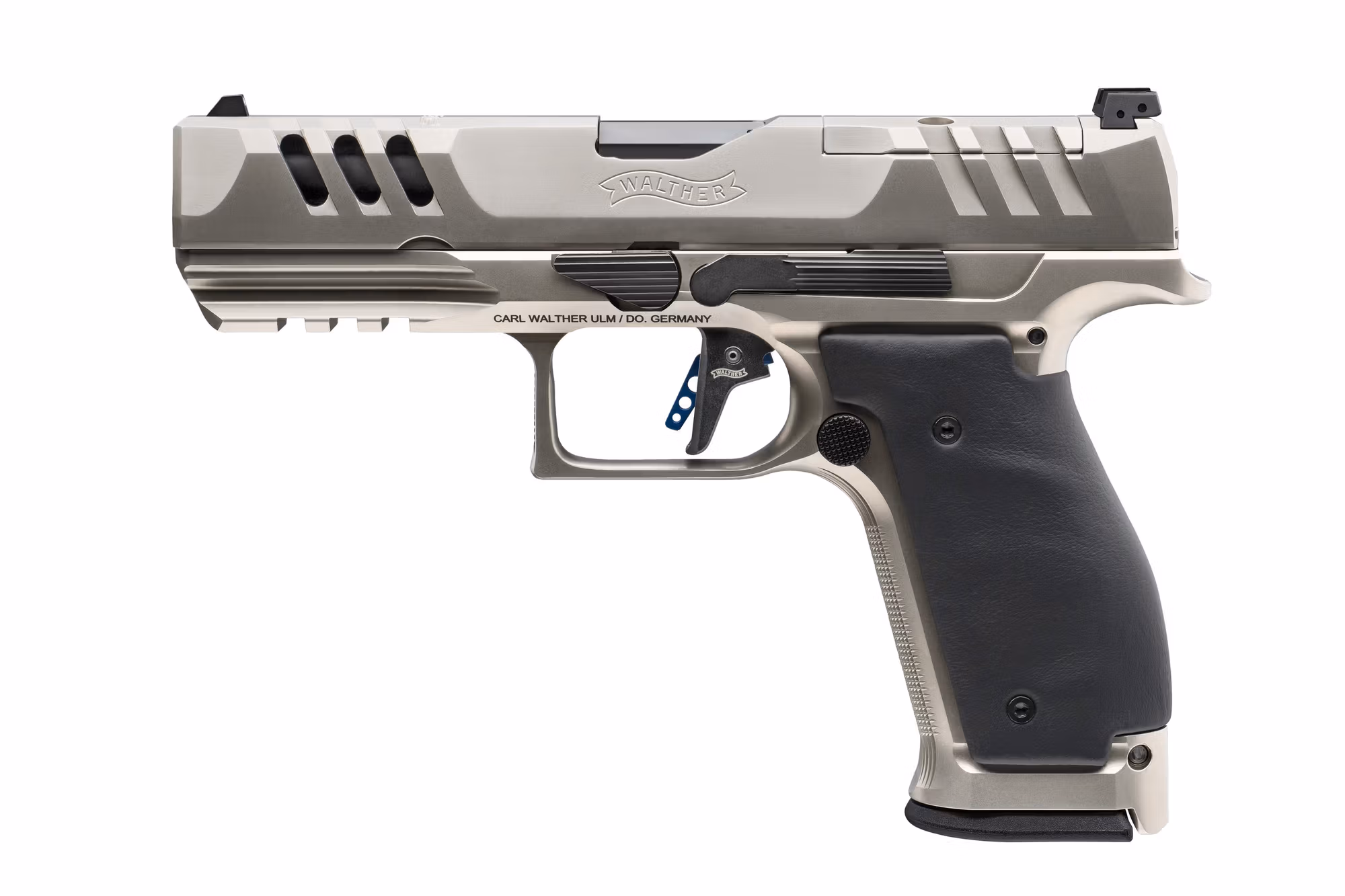 Exklusiv für die limitierte Edition präsentiert Walther eine 4,5 Zoll PDP Steel Frame in satinierter Edelstahl-Ästhetik. Perfekt abgestimmt und auf das Wesentliche reduziert. Ganz in Leder und Stahl. Die einzigartige PVD-Beschichtung garantiert nicht nur extreme Oberflächenhärte, sondern auch ein Finish der Spitzenklasse. Mit dem legendären Dynamic Performance Trigger ausgestattet, positioniert sich die Waffe bereits heute als moderne Ikone und setzt neue Maßstäbe in sportlicher Performance und zeitloser Eleganz.