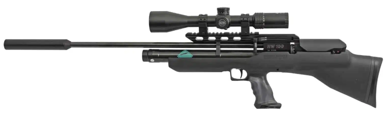 In der Standardausführung wird das Modell HW 100 BP mit Air-Stripper ausgeliefert. Gegen Mehrpreis ist das Luftgewehr auch mit Moderator lieferbar.