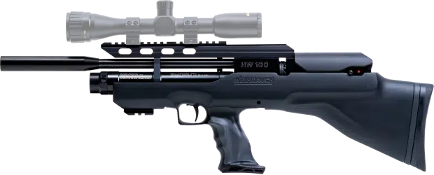 - In der Standardausführung wird das Modell HW 100 BP mit Air-Stripper ausgeliefert. Gegen Mehrpreis ist das Luftgewehr auch mit Moderator lieferbar.
